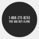 Adesivo Redondo Lifeline 1-800-273-8255 Prevenção Contra Suicídio