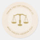 Simple, elegant, modern, minimalistic, light beige linen texture with personalizable brown typography and justice logo.