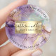Lilac Glitter Watercolor Faux Gold Foil Obrigado Clássico Do Adesivo Redondo. Este design apresenta um estilo de letra de script de assinatura clássico definido em relação a um belo fundo brilhante lilás moderno. Perfeito para um salão de beleza, cabeleireiro, maquiador ou cosmetólogo.