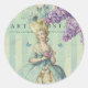 Lilas au printemps, traduzido simplesmente significa Lilacs em primavera. Este chique romântico, muito francês, parece um compromisso de colagem de uma vintage placa de moda do século 18, uma encantadora imagem vintage de um pequeno cão numa almofada, borboletas e lilases. Todos deitados sobre um fundo azul listrado e creme. ©Wicktly Lovely, todos os direitos reservados.