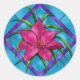 Uma vibrante Lilly, em cor-de-rosa profundo, é o foco central neste painel de vidro corado digitalmente criado cercado por blues e roxas. Olhos pegando e simplesmente lindos para usar a qualquer hora.