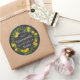 Um adesivo russo com uma coroa de limão de aquarela em fundo de quadro, adequado para seu Limoncello caseiro.