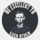 "Sejam excelentes entre si", Abraham Lincoln. Inscrição e retrato de tinta, em t-shirts, botões, cartas, presentes.