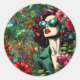 Adesivo Redondo Linda Mulher no Jardim das Flores