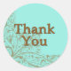 Belos adesivos em aqua e marrom de chocolate com um fundo de rico. Texto: Obrigado. Estes adesivos vêm em dois tamanhos, e são perfeitos para selar cartões de agradecimento. Se você está enviando notas de agradecimento por presentes de casamento, presentes de chá de fraldas, ou qualquer outra razão, esses adesivos farão seus envelopes parecerem especiais.
