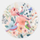 Adesivos Redondos Clássicos de Flores e Pássaros em Aquarela Pastel da Primavera