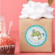 Mostre sua gratidão com nosso adorável adesivo "Obrigado por Vir" para Chá de Bebê do Dino! Este charmoso adesivo redondo apresenta um doce dinossauro bebê feliz saindo de seu ovo, acompanhado de um passarinho amigo. Cercado por uma borda azul divertida com pegadas de DINO verdes, ele complementa perfeitamente a decoração do seu chá de bebê com tema de dinossauro.