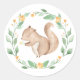 Adesivo Redondo Lindo Esquilo Bebê Aquarela Coroa de Folhagem