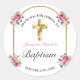 Adesivo Redondo Lindo Obrigado de Batismo Cruz Ouro Floral Rosa