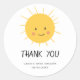 Adesivo de agradecimento fofo e moderno com uma ilustração de um sol sorrindo. Ótimo para complementar a papelaria da sua festa de baby shower. Ilustrado e projetado por Patricia Alvarez.