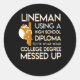 Adesivo Redondo Lineman Fix College Degree Mensagem