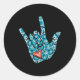 Adesivo Redondo Linguagem de Sinal ASL Eu Amo Você Gesture Coração