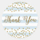 Adesivos "Obrigado" com listras brancas e azuis e brilho de confetes falsos. Complete seu tema com convite, placas, decorações e muito mais da nossa Coleção Azul Claro e Dourado.