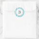 Adesivo Redondo Listras de Monograma com Babado em Turquesa Clássi