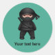 O adorável chubby, mas assustador, pequeno ninja está vestido de roupa preta e carregando katana - espada tradicional japonesa.