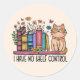 Este design floral bonito e colorido apresenta a frase engraçada "Eu não tenho controle de prateleira" com livros florais bonito e um gato fofo. É um presente perfeito para o amante de bibliotecas ou livros e amigos amantes de gatos e familiares.