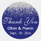 Este adesivo redondo moderno apresenta um brilho de prata em um rico fundo azul real. Você pode alterar a fonte e o texto clicando no link personalizar. Isto é parte de uma suíte de casamento que você pode personalizar completamente.