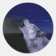 Adesivo Redondo Lobo uivando na lua no mar