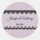 Adicione um toque personalizado aos favores de casamento com estes adesivos personalizados. Eles estão prontos para serem personalizados com seus nomes e sua data de casamento e apresentar minhas ilustrações de renda preta em um fundo de lavanda suave.