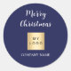 Um clássico fundo azul marinho. Personalize e adicione o logotipo de sua empresa e sua empresa e um texto. Texto: Feliz Natal escrito com um roteiro moderno de estilo letteres.