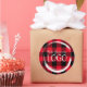 Adesivo Redondo Logotipo comercial da Xadrez de Buffalo Vermelha e