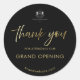 Esse mínimo de script preto e ouro do que o adesivo é um design fácil de editar que permite adicionar o logotipo e o site da sua empresa. Obrigados convidados no lançamento de seus negócios optando por este moderno com tipografia de script com um sentimento moderno. O adesivo de abertura comercial apresenta um esquema de cores clássico de texto dourado contra fundo preto. Adicione o logotipo de cor do cheio e edite os detalhes e você poderá riscar este da sua lista de ações a fazer!