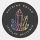 Gemstone Rainbow Quartz Crystal Business Logo Classic Round Sticker. Este elegante design de negócios moderno apresenta um cluster de cristais de quartzo com gradiente arco-íris sobre um fundo negro sólido. Perfeito para um designer de joias, blogueiro de moda, mestre holístico de reiki ou até mesmo uma butique!