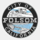 Logotipo gráfico Cidade Editada de Folsom. A cidade de Folsom é a nordeste de Sacramento. O único sinal que mostra o logotipo está em frente à Prefeitura. Este adesivo usa uma versão limpa desse logotipo. A Folsom tem uma longa história, passando os anos da Dourada Corrida aos tempos modernos.