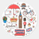 Esta design apresenta símbolos de Londres colocados em forma de círculo sobre um fundo branco.
