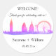 Londres, Inglaterra, linha do horizonte do Reino Unido é uma pintura de aquarela original da artista Monika Howarth Wedding favorece adesivos. Londres, Big Ben, pintura rosa com tipografia negra. Personalize-o com seus detalhes.
