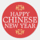 Adesivo Redondo Lótus de Ano Novo Chinês Feliz Dourado Vermelho Mo