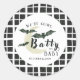 Selle sua celebração assustadoramente doce com este adesivo Batty for Baby, apresentando um fundo xadrez preto e branco, uma lua crescente em aquarela suave e morcegos voando. Com texto personalizável abaixo do design, é perfeito para sacolas de lembranças, selos de envelope ou etiquetas de festa. Coordene com pratos, copos, guardanapos e decoração da suíte completa do evento para um visual de festa de bebê estiloso e coeso.