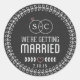 Adesivos de envelope de convite de data de salvamento de monograma personalizado fofo. Com um design de coroa de louro fofo envolvendo alianças de casamento com suas iniciais personalizadas. Personalize com suas próprias iniciais e data de casamento.