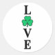 Adesivo Redondo LOVE Clover Shamrock Irlanda, Rua do Partido Patri