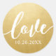 Adesivo Redondo Love Script Dourado Favor Sticker com Data