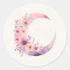 Adesivo Redondo Lua de Crescente Rosa com Flores Bonito