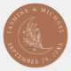 Adicione um toque personalizado aos seus envelopes, favores de casamento, e muito mais com estes adesivos de casamento Elegante Moon e Stars. A design apresenta uma ilustração de uma linha de creme-claro de uma lua adornada com estrelas e folhagem num fundo de terracota. Seus nomes e data de casamento são exibidos em letras de creme.