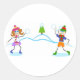 Ótima ilustração cartoon de uma pequena vara e menino jogando bolas de neve um no outro em um dia de inverno nevado. Imagem disponível em vários presentes e produtos.