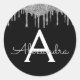 Adesivo Redondo Luxo Preto Prateado Brilho Glam Monograma Nome