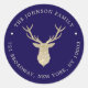 Adesivo Redondo Luxo Veado Dourado Azul Natal Endereço de Retorno