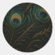 Adesivo Redondo Luxurious Peacock Feathers Golden Teal Pattern