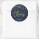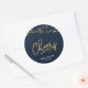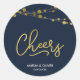 Este elegante adesivo Cheers apresenta cordas de luzes e a palavra "Cheers" em folha de ouro falsa contra um fundo azul escuro. É um adesivo versátil que é excelente para casamentos, noivados, aniversários, aniversários e várias outras celebrações. Veja os itens correspondentes como convites e carimbos aqui https://www.zazzle.com/collections/strings_of_lights_faux_gold_celebration_collection-119311942951401241?rf=238364477188679314 Personalize-o com seus detalhes substituindo o texto do marcador de posição. Para obter mais opções, clique no botão "Personalizar". *Observe que a Marca d'água do Zazzle que aparece na visualização de zoom NÃO aparecerá no produto impresso final. © Rosewood e Citrus
