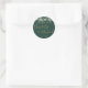 Favor de casamento verde esmeralda e dourado agradecimento adesivo redondo clássico com lindas luzes de corda e nomes em estilo signature. Personalize com seus detalhes especiais de agradecimento em tipografia branca moderna. Criado por Thisisnotme