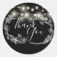 Adesivo Redondo Luzes de Corda Preto e Branco Floral Obrigada