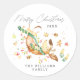 Adesivos redondos e extravagantes com uma adorável ilustração de um Dachshund em aquarela e o título "Feliz Natal". Personalize esses adesivos divertidos com o nome da sua família e o ano. Cartões de Natal, papéis de presente, adesivos, etiquetas e outros materiais de papelaria correspondentes estão disponíveis na loja! (c) The Happy Cat Studio.