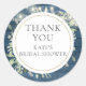 Um adesivo de agradecimento de chá de noiva elegante com luzes de corda bonitas e folhas delicadas de folhagens em aquarela sobre um fundo de madeira azul rústica. Este design sofisticado pode ser personalizado com seu nome. Criado por Thisisnotme©