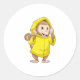Adesivo Redondo Macaco chovendo com capa de chuva