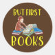 Adesivo Redondo Macaco Engraçado Lendo Livro Mas Primeiro