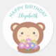 Macaco Kawaii Cute Com Flores Feliz Aniversário Clássico Redondo