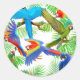 Arte original da designer Carolyn McFann de papagaios coloridos de arara-palha de hyacinth, azul e ouro e arararas híbridas para militares e escarpas em presentes de qualidade, postagens e cartas.